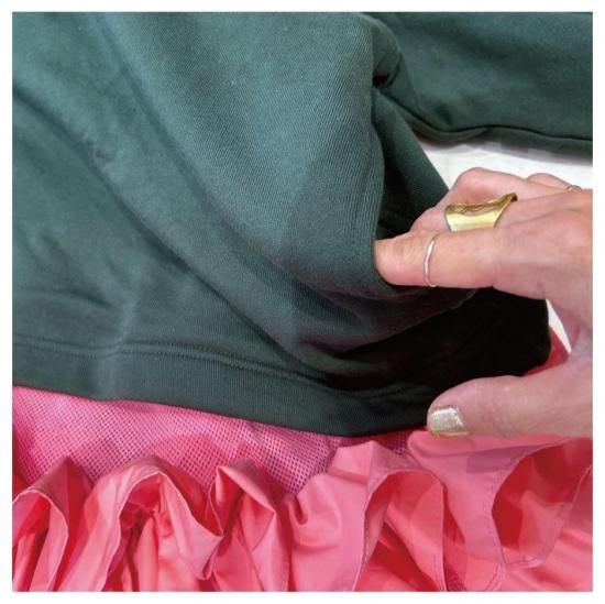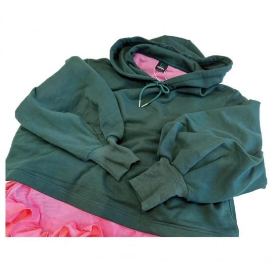 フリルパーツがレイヤードされたスウェットフーディーです。